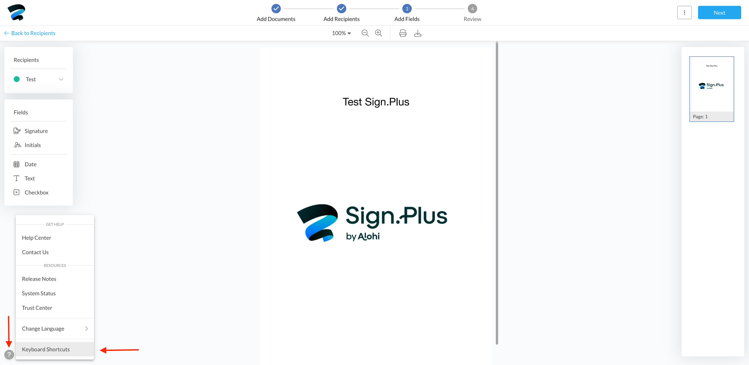 Erweitern Sie Ihre Produktivität mit Sign.Plus, indem Sie Tastaturkürzel nutzen, um den Prozess der Unterschrift und das Erstellen von Signaturanfragen zu vereinfachen. Diese Verknüpfungen werden so zusammengestellt, dass Sie Zeit sparen, den Aufwand reduzieren und Ihren Workflow vereinfachen können.