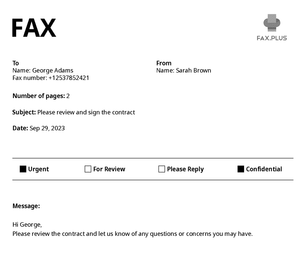5. Your provided data will integrate into our pre-formatted cover sheet template and will be sent as the initial page alongside your additional documents.