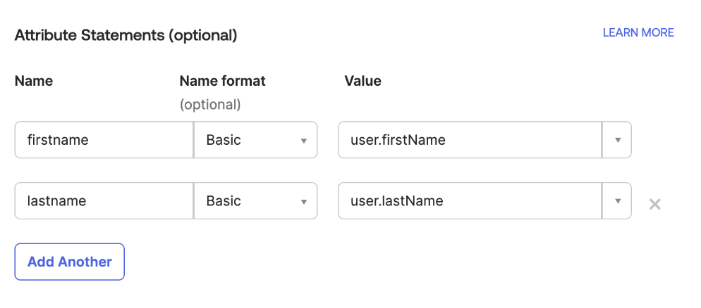 3. In the Attribute Mapping section, make sure to add the “First name” and “Last name” as attributes: