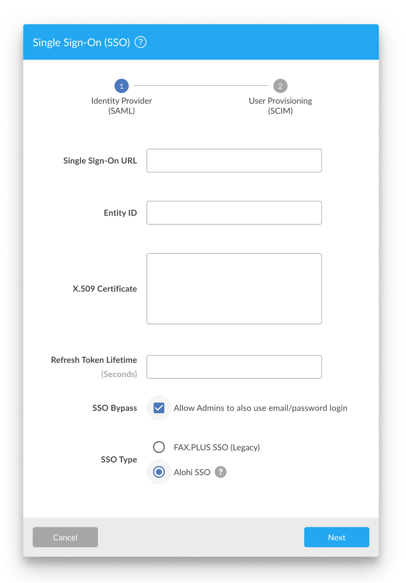 Step 2: Configuring Alohi SSO on your Sign.Plus or Fax.Plus admin panel