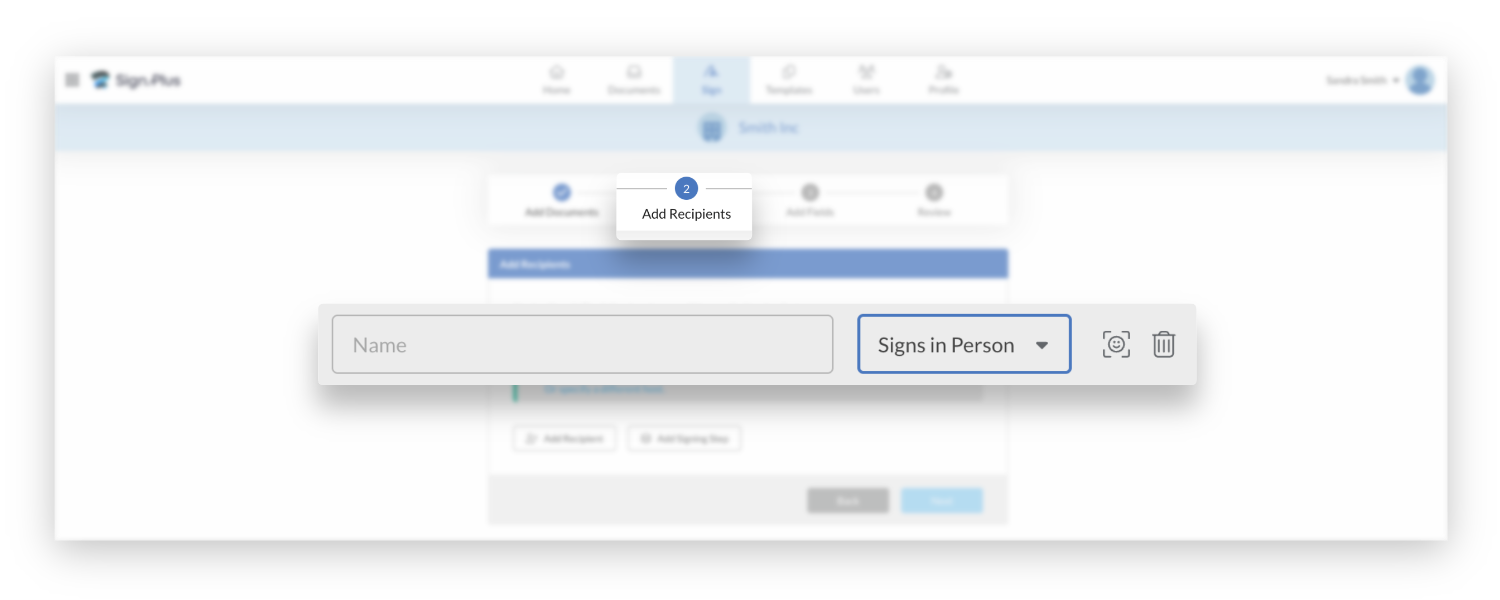 - In the Add Recipients section, input the names of the individuals who will be signing the document in person.