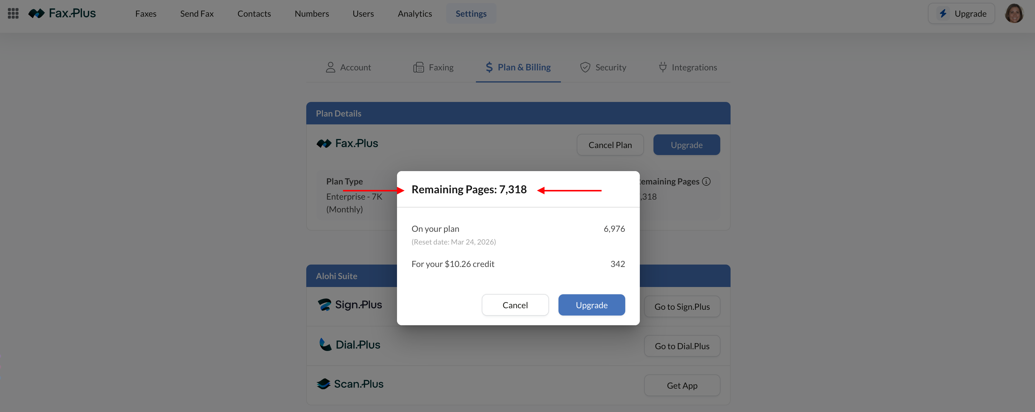 You can find your Remaining Pages in your Fax.Plus account by following these steps: