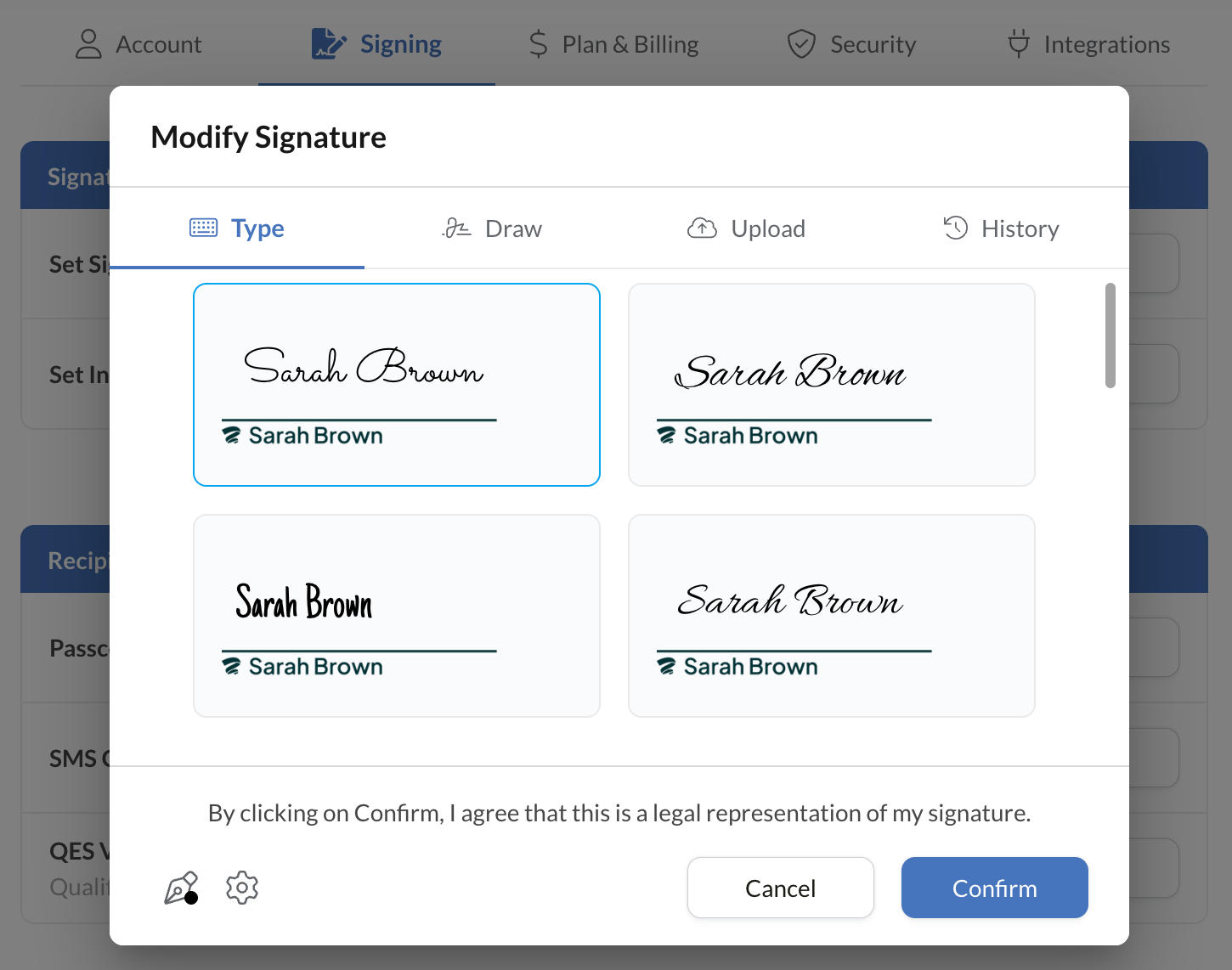 - Click on the Gear ⚙️ icon to reveal the popup window for Signature Options.