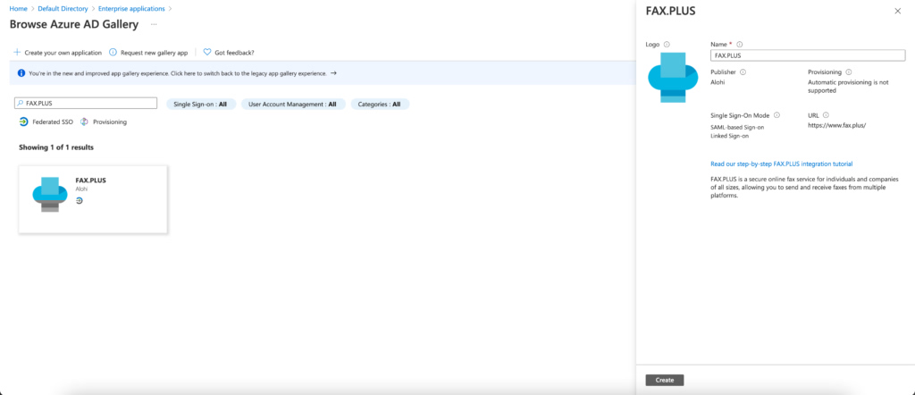 Passo 1: Aggiungere l'app Fax.Plus ad Azure AD