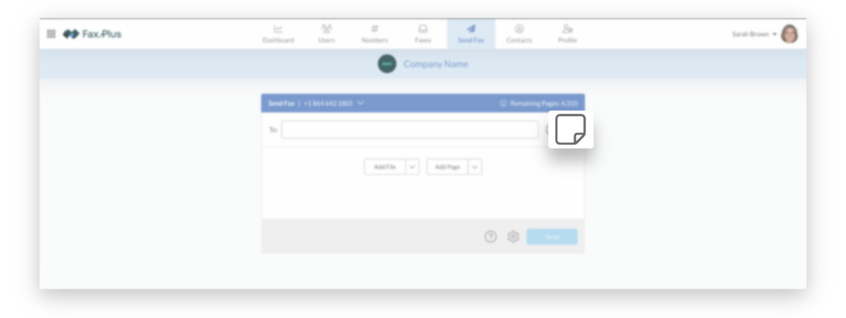 All'interno della sezione Invia Fax sulla tua Dashboard, trova l'iconaAggiungi nota . Un popup verrà rivelato dove è possibile aggiungere nella tua nota. Una volta che Confermato, Invia il tuo fax.