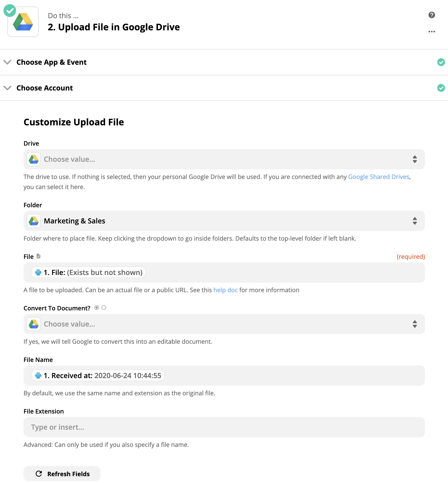 受信したファックスを Google ドライブに自動的にアップロードするには、Zapier の統合が必要です。