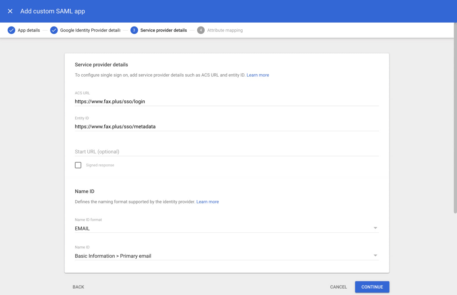 - ID da entidade:https://app.fax.plus/sso/metadata