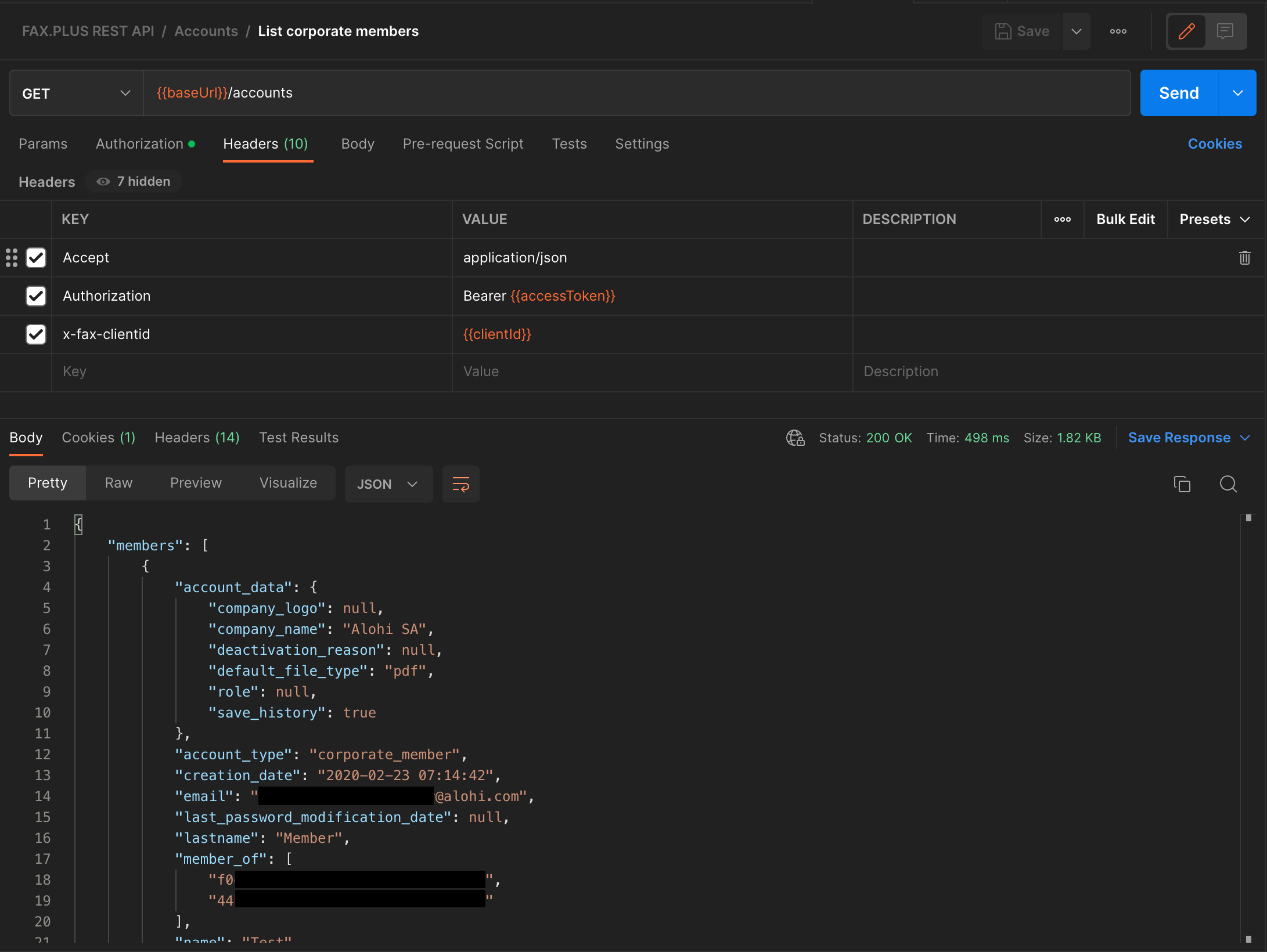 Для получения списка всех корпоративных членовинициировать запрос HTTP GET по следующему URL: https://restapi.fax.plus/v3/accounts/.