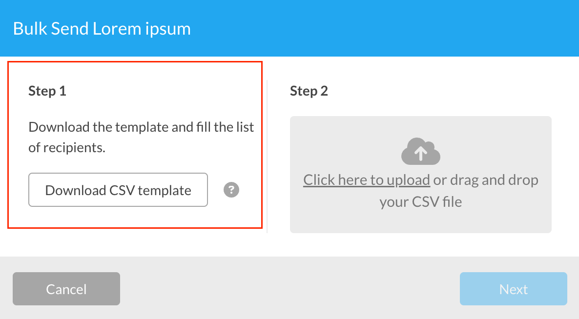 - Заполните CSV с данными получателей и любыми дополнительными динамическими полями (до 100 строк).