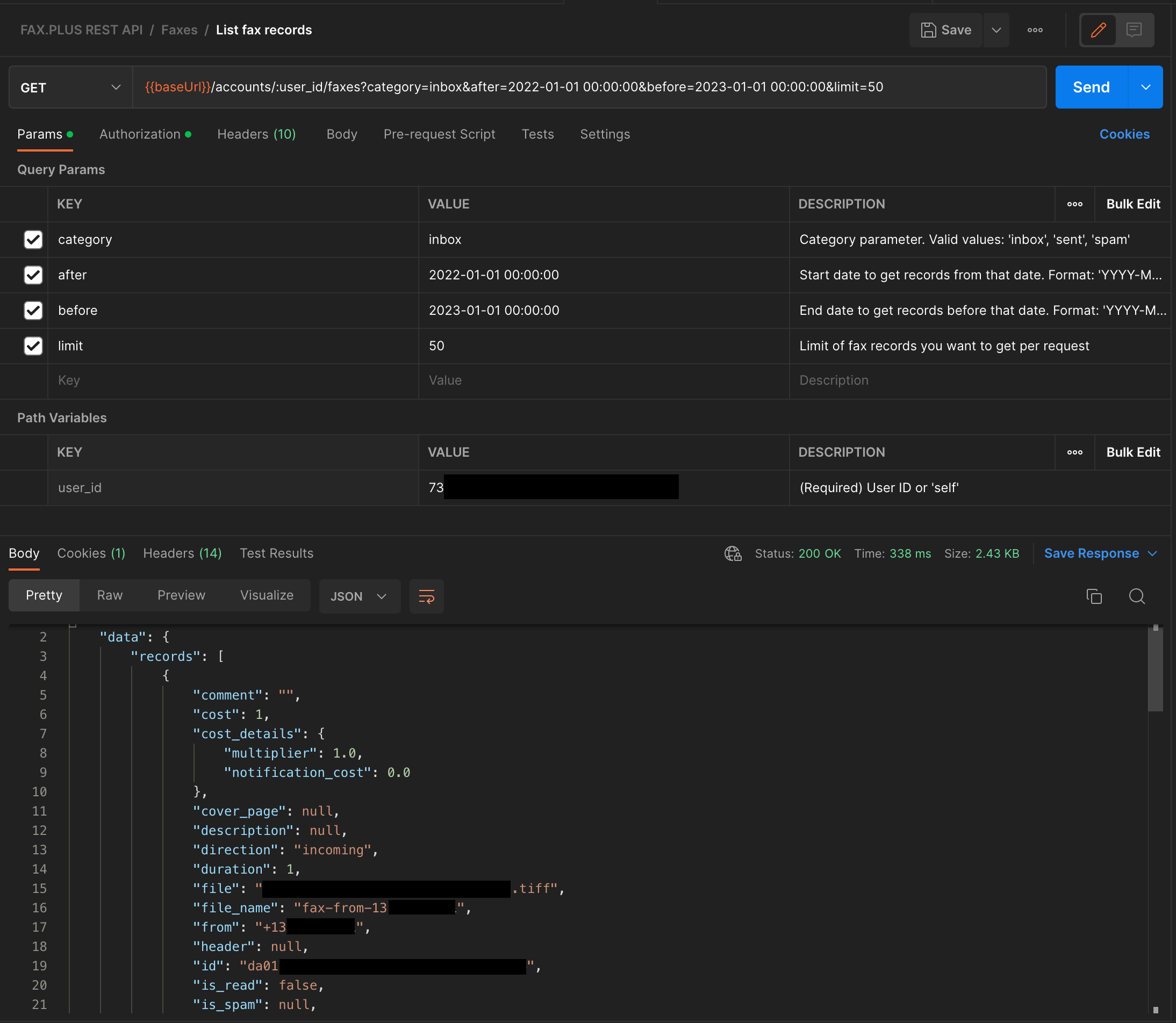 https://restapi.fax。 lus/v3/account/[member user ID]/faxes?category=inbox