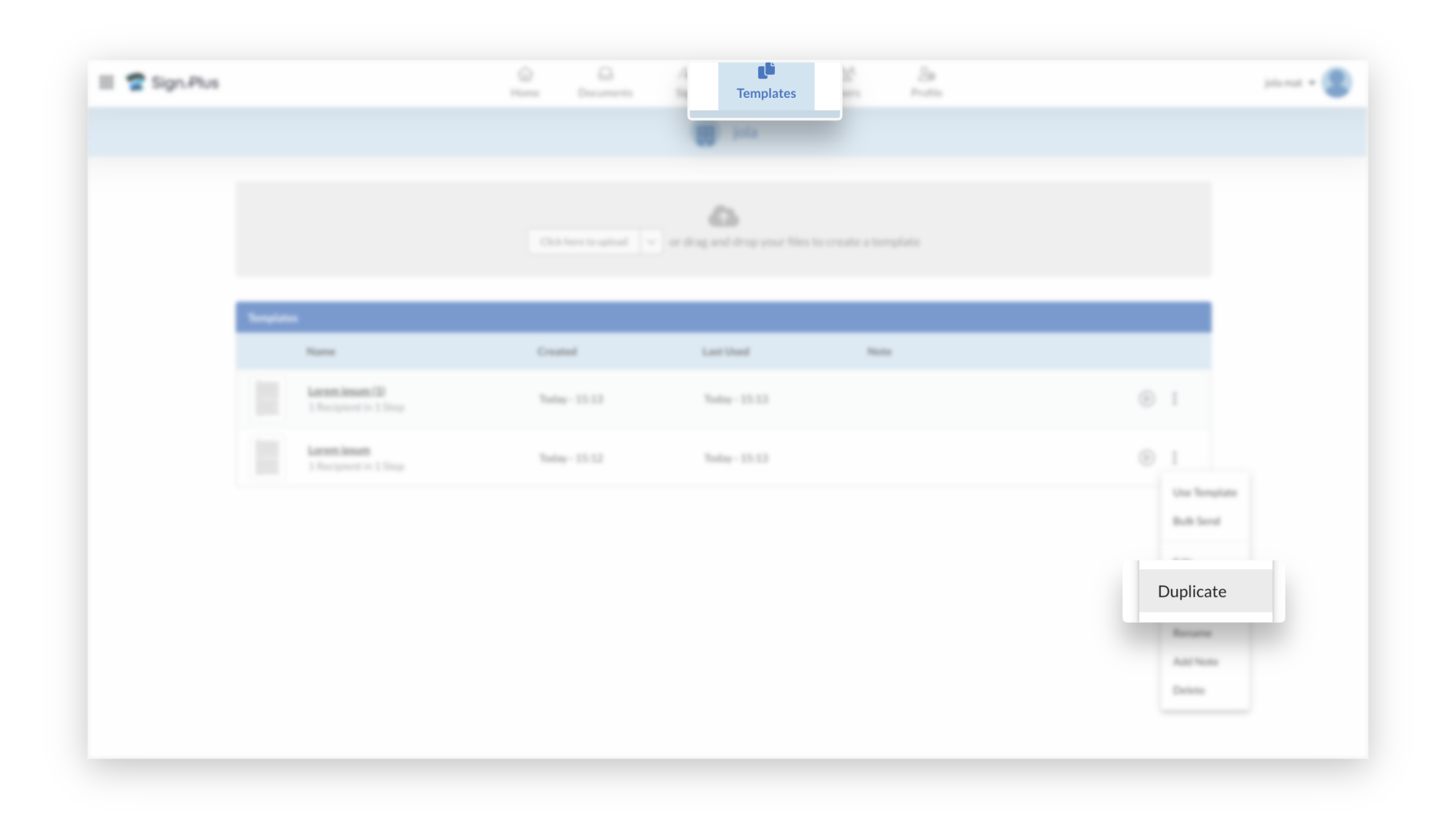 - 登录到您的 Sign.Plus 帐户,然后转到您的工作台上的模板部分。 除了回收站中的文件外,您可以在任何状态中复制文档。